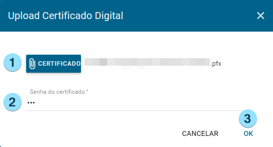 Pré-requisito: Certificado digital modelo A1 com extensão .pfx, com sua senha. Não pode ser modelo A3.