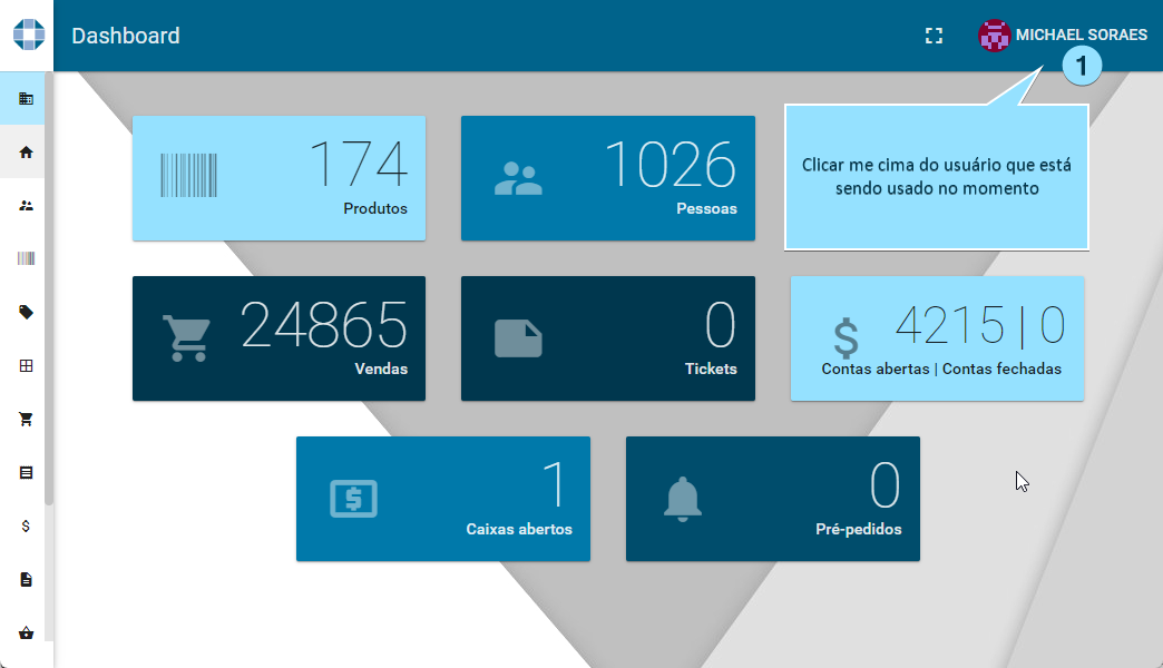 1 – Clique sobre o usuário que está atualmente logado no Datahex ERP.
