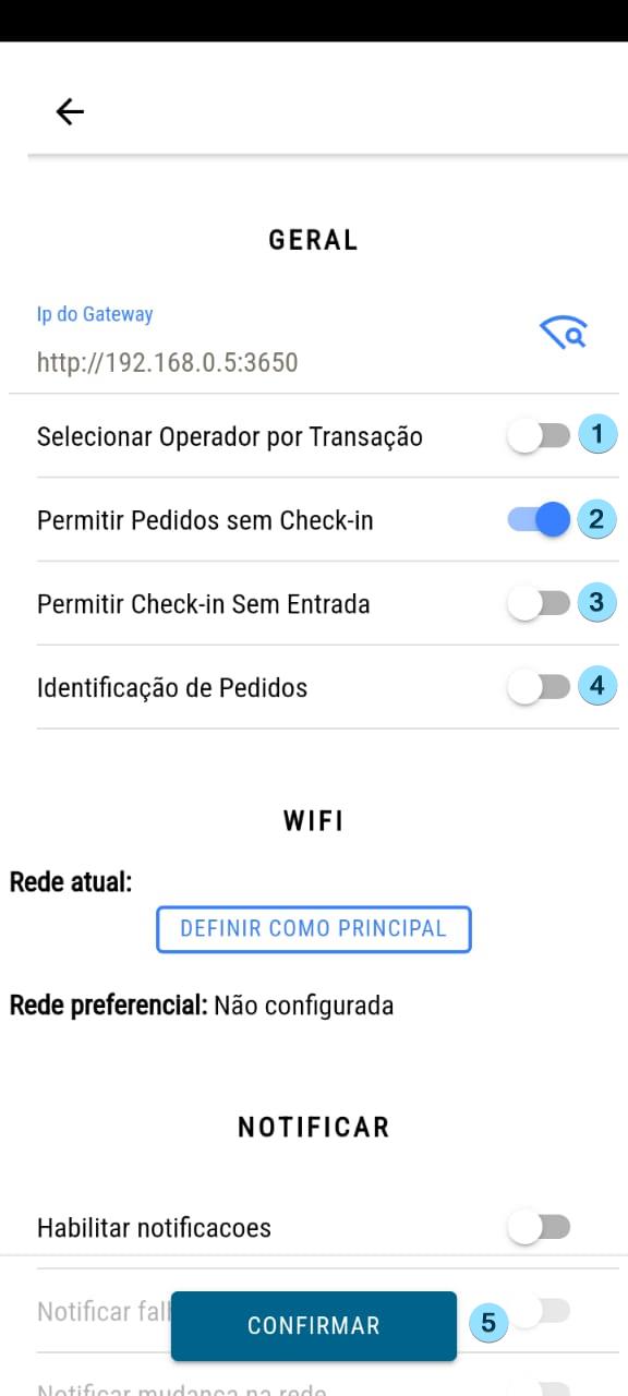 1 – Se o celular for usado sempre pelo mesmo operador, não é necessário habilitar essa opção. Em um tablet compartilhado por vários operadores, especialmente se estiver fixo em um local, é recomendado habilitar essa opção para solicitar a escolha do operador a cada novo pedido feito pelo app.