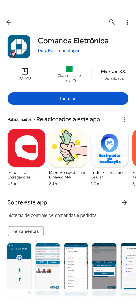 7 – No seu celular, acesse a Play Store e pesquise por "Comanda eletrônica Datahex".